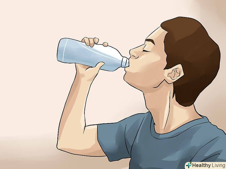 Пийте багато води. [23] Вода становить важливу частину здорового раціону. Як правило, чим більше рідини п'є людина, тим краще він себе почуває. Вода регулює всі процеси в організмі, а під час занять ми втрачаємо вологу, яка виходить разом з потом. Загальна рекомендація "8 склянок води в день" не є обов'язковою, але намагайтеся завжди мати при собі пляшку з водою, особливо під час тренувань і занять в тренажерному залі.- Завжди носіть з собою пляшку води і регулярно поповнюйте запаси. Така хитрість дозволить непомітно вживати більше рідини.