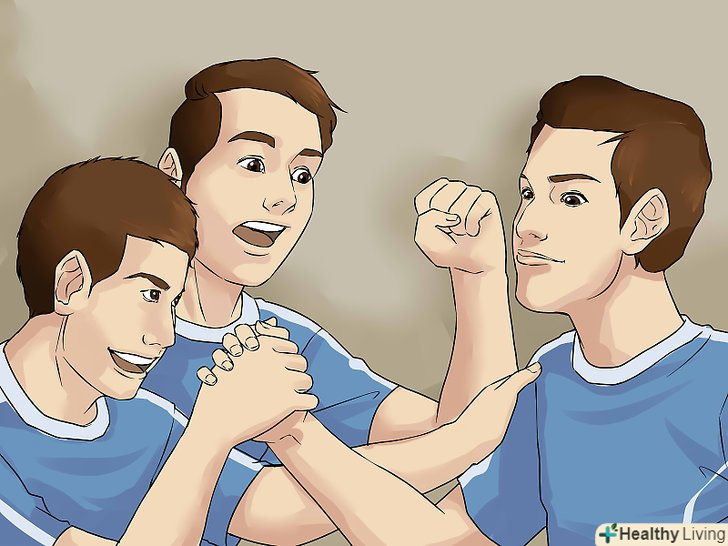 Дружіть з іншими гравцями. Одна з головних причин, які спонукають людей займатися спортом, полягає в бажанні знайти друзів. [4] у команді завжди доводиться мати справу з безліччю людей. Досить ймовірно, що у вас виникне дружба хоча б з деякими з них. Приділяйте належну увагу друзям, щоб стати успішним спортсменом. З друзями завжди можна тренуватися у вільний час, а також підтримувати бойовий дух і гарний настрій.- У командних видах спорту на кшталт футболу над деякими навичками краще працювати наодинці, але інші неможливо розвинути без партнерів (гра воротаря, техніка пасу). Добре, коли партнер є вашим другом. В цьому випадку тренування будуть приносити ще більше радості.