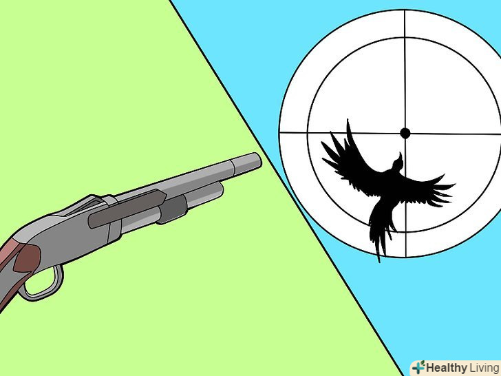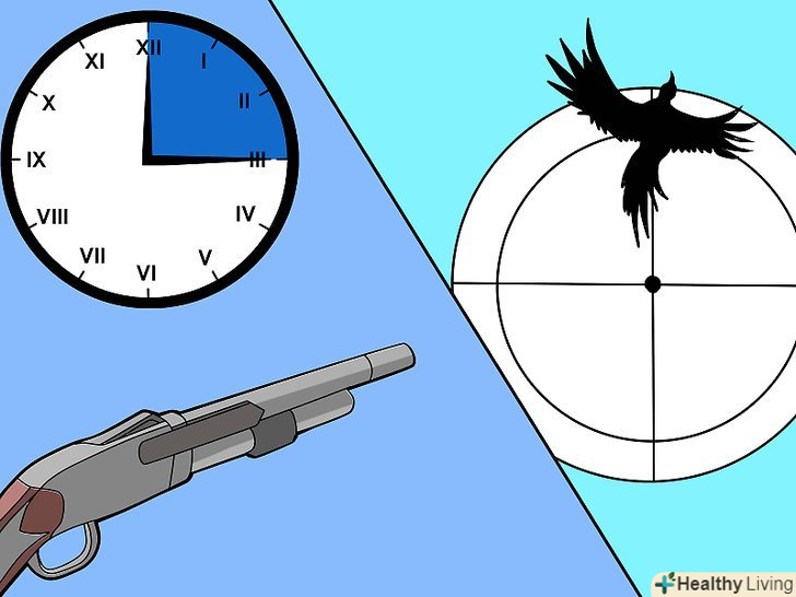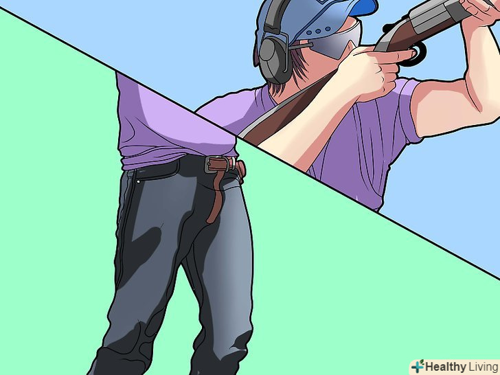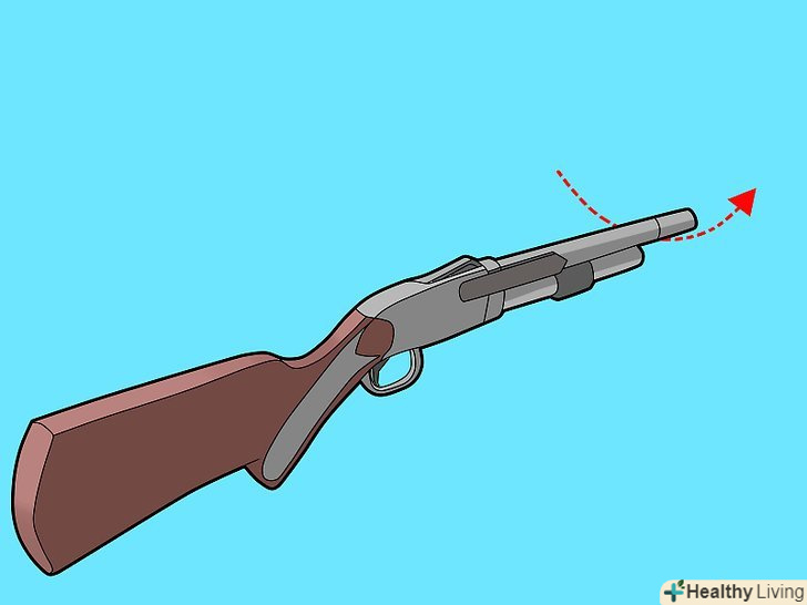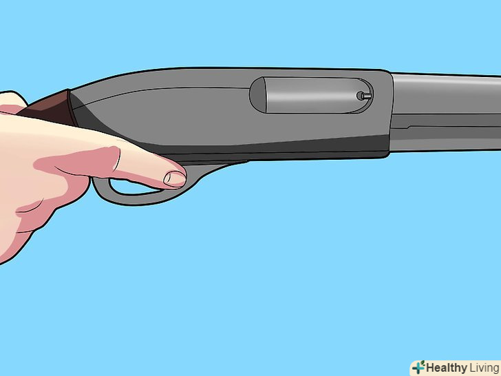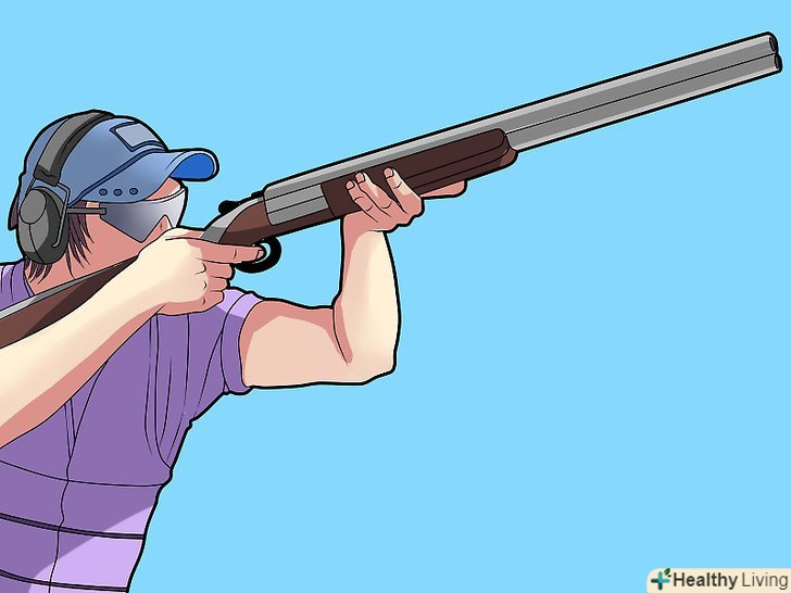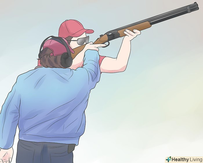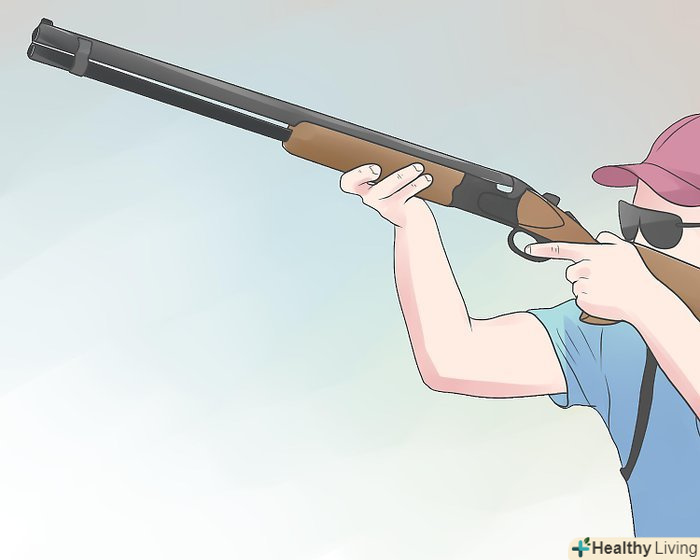 Прийміть належну позу для стрільби. дивлячись на ціль, тримайте спину прямо і розставте ноги для комфортного і стійкого положення. Зігніть трохи переднє коліно і перемістіть свою вагу на передню ногу. Упріть рушницю в плече і так тримайте. Щільно торкніться щокою приклада-отримаєте хороший огляд зі своєї рушниці. [2]