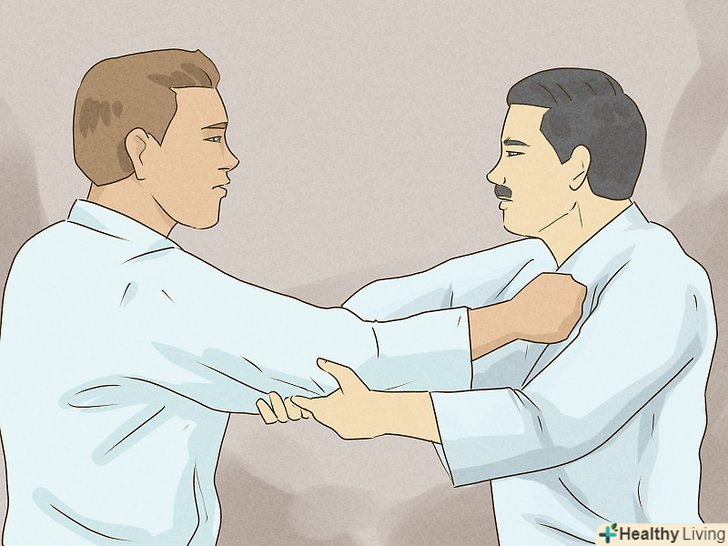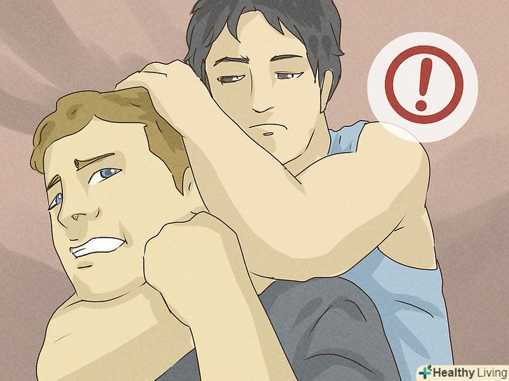 Уникайте задушливого захоплення. якщо ваш противник знаходиться за спиною, і робить вам задушливий захоплення, не намагайтеся присісти і перекинути його через спину. Це тільки посилить його хватку, і завдасть вам серйозної шкоди, особливо, якщо ви недостатньо сильні, щоб впоратися з його вагою. Замість цього, схопіть руку суперника, яка тримає вашу шию, і утримуючи її, почніть повертатися до суперника, щоб вивернутися з захоплення.- Якщо вам вдалося повернутися, ви навіть зможете звалити суперника на землю з цього Положення. По можливості, постарайтеся укласти його на лопатки.