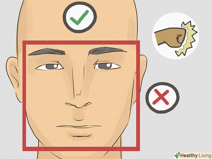 Прийом удару в голову. звичайно, краще за все не отримати удар в голову, але якщо ви б'єтеся, швидше за все якогось роду удари все ж отримаєте, тому слід знати, як протистояти їм. Щоб заблокувати удар в голову, рухайтеся в бік удару, стискаючи шию і щелепи, щоб мінімізувати шкоди. Намагайтеся зробити так, щоб кулак суперника потрапив у ваш лоб, і йому стало боляче, замість того, щоб отримати удар в ніс, вилицю, або щелепу.- Рух у бік удару замість відхилення назад насправді мінімізує шкоди, тому що у Вашого суперника буде менше часу на розгін.