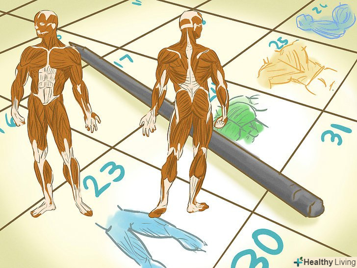 Включайте в розклад дні відпочинку. незважаючи на те що для набору м'язової маси необхідно регулярно тренуватися, наявність одного або двох днів відпочинку щотижня теж важливо.- Насправді, м'язи, в основному, ростуть і зміцнюються під час фази відпочинку після тренування. [11]