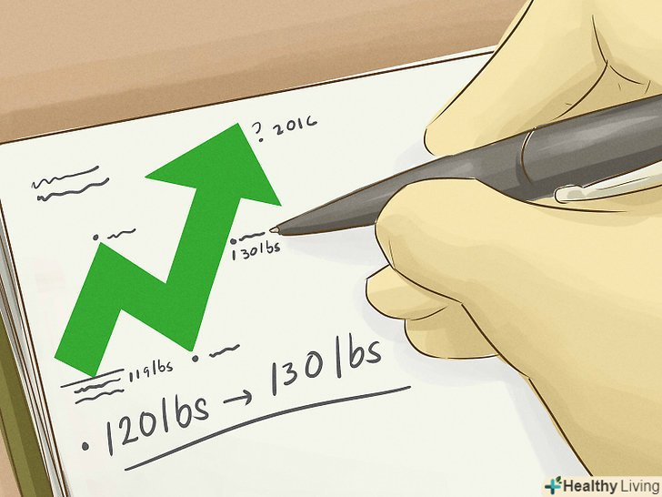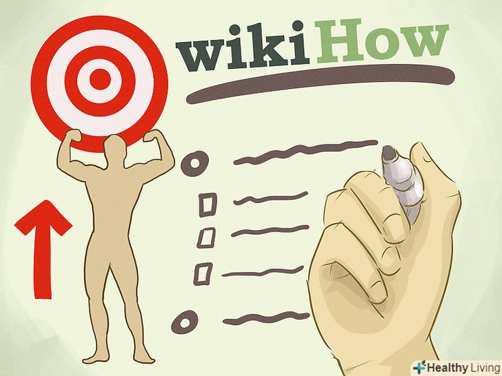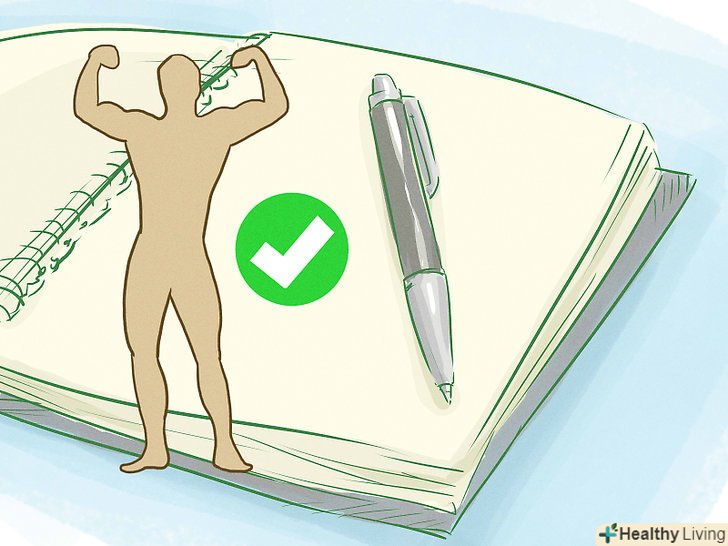 Ставте реалістичні цілі. у кожного організму свої можливості. Сядьте і напишіть реалістичну довгострокову мету для себе.- Цілі повинні бути вимірними та конкретними. Не просто "набрати вагу»або "наростити м'язову масу". Намагайтеся максимально конкретно позначити свої цілі. Якщо вони будуть розпливчастими або недосяжними, вам буде складніше не зійти з дистанції.