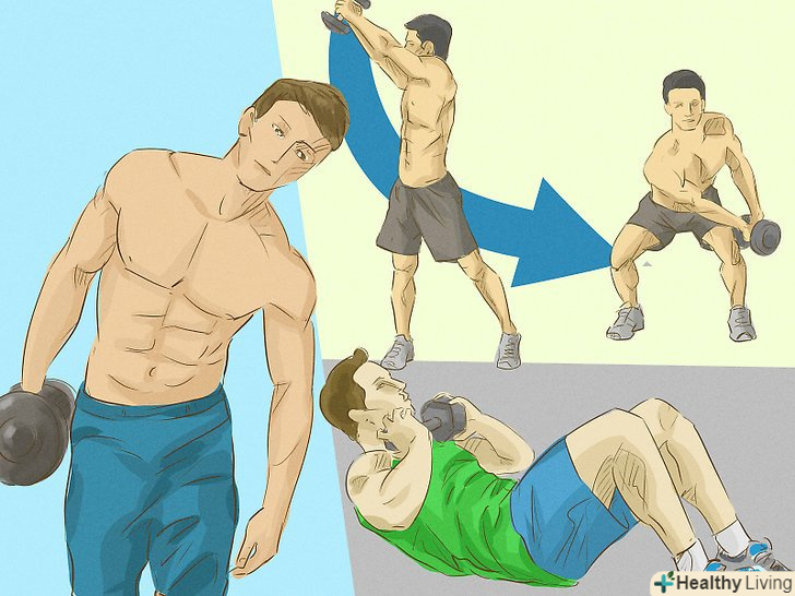 Опрацьовуйте всі основні групи м'язів. щоб збільшити м'язову масу, вам потрібно буде працювати з кожною групою м'язів. [10]- Важливо зміцнити всі м'язи, включаючи м'язи кора, нижньої частини тіла, верхньої частини тіла, рук і грудної клітини.