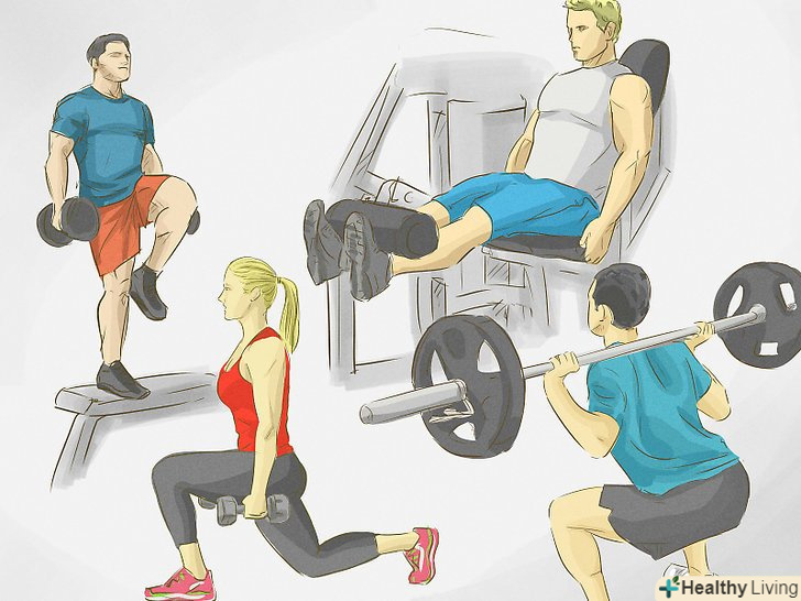 Виконуйте вправи на нижню частину тіла. щоб збільшити м'язову масу в нижній частині тіла, рекомендується спочатку виконувати ізолюючі вправи, а потім проводити силове тренування. [15] Додайте деякі з цих вправ з важкими вагами і помірною кількістю повторень:- Згинання/розгинання ніг сидячи;