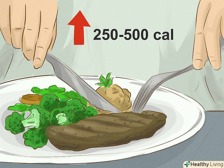 Збільште кількість споживаних калорій. щоб набрати вагу, вам потрібно збільшити загальну кількість споживаних калорій. Підвищуйте його на 250-500 калорій в день, щоб поправитися. [1] як правило, це призводить до збільшення ваги приблизно на 0,5–1 кг в тиждень.- Більш швидкий набір ваги або споживання шкідливої їжі для збільшення маси тіла зазвичай вважаються нездоровими варіантами.