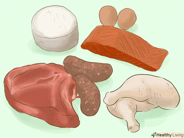 Їжте достатню кількість білка. якщо ви намагаєтеся набрати вагу і наростити м'язову масу, Ви повинні споживати достатню кількість білка, щоб йти до своєї мети. Пісний білок (і зелень) повинен бути основним інгредієнтом у вашому раціоні.- Як правило, рекомендується споживати 0,8 грам білка на кілограм маси тіла. [2]
