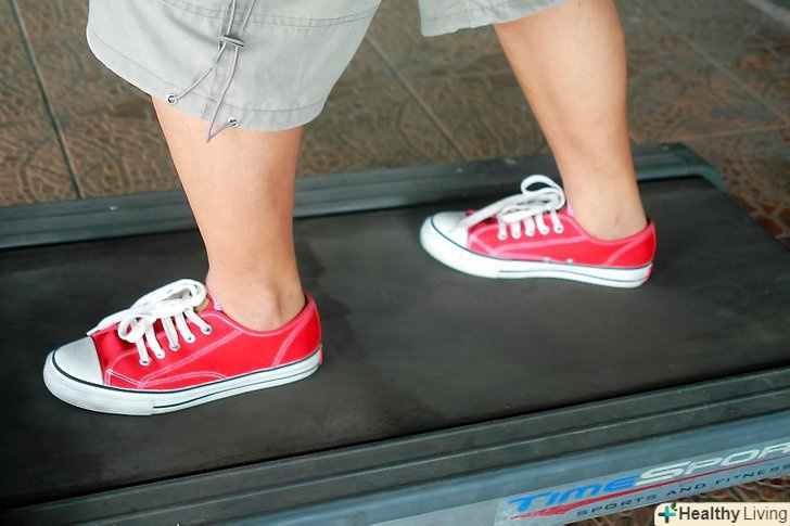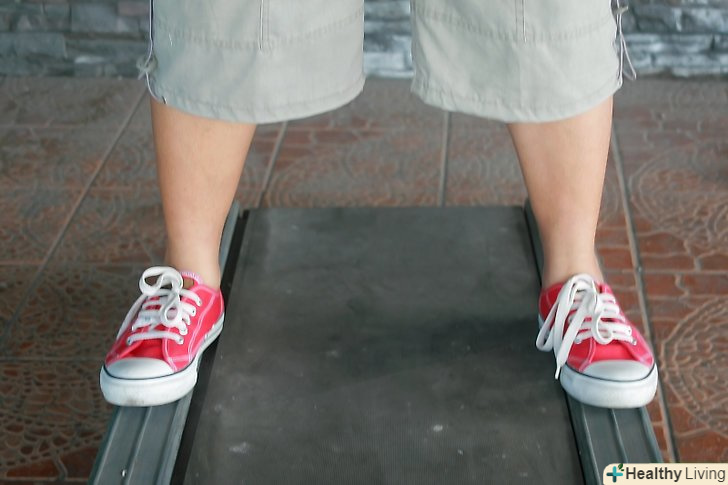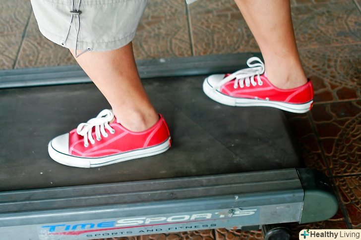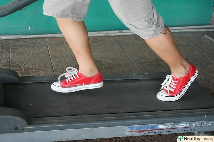 Почніть тренування з 5 - 10 хвилин кроку або легкого бігу на невеликій швидкості (близько 5 км на годину), щоб розім'яти і розігріти суглоби і м'язи.- Попередні вправи на розігрів перед тренуванням на біговій доріжці прискорять кровообіг, одночасно знижуючи ризик потенційних травм.