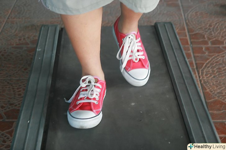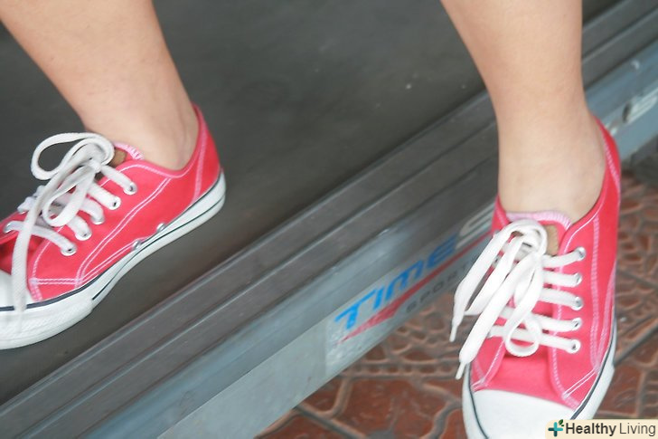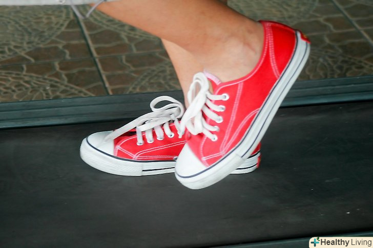 Носіть належне спортивне взуття, яке оберігає ноги від травм, а не свої звичайні шльопанці або високі підбори.- Якщо взуття на шнурках, гарненько зав'яжіть їх, щоб вони не розв'язалися або не потрапили в рухомий механізм доріжки.