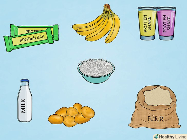 Вживайте багато білків і вуглеводів. їжте багату білком їжу до і після тренування. Білок допомагає наростити м'язову масу, а вуглеводи постачають організм енергією і допомагають білкам досягти потрібних клітин.