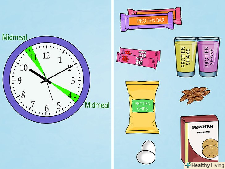 Перекушуйте здоровою їжею протягом дня. для багатьох необхідність їсти є однією з найбільш приємних аспектів набору м'язової маси, але вам варто бути обережними. Слідкуйте за тим, як часто ви перекушуєте і що саме їсте. Безліч поживних речовин, необхідних для набору м'язової маси, ви можете отримати і зі звичайної їжі, але Протеїнові коктейлі можуть стати прийнятною заміною. Солодощі і жирна їжа насичують вас енергією лише на короткий час, так що краще прибрати їх зі свого раціону.- Між основними прийомами їжі ви повинні добре і часто перекушувати. Це дозволить метаболізму працювати, спалюючи калорії, які ви не скидаєте під час тренування.