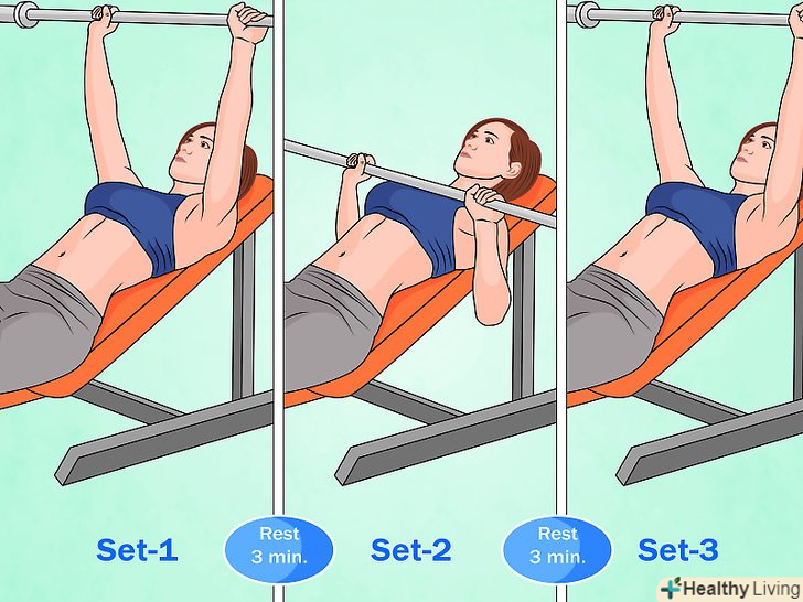 Займайтеся в повну силу. ви повинні тренуватися на межі своїх можливостей. Ви не зможете наростити м'язи, позбутися від жиру і досягти інших цілей, якщо не змусите себе займатися на знос. По можливості найміть особистого тренера, який буде стежити за тим, щоб ви правильно і ретельно виконували вправи.- Виконуючи вправу, ваше останнє повторення має бути для вас практично нездійсненним. Після заходу ваші м'язи повинні бути повністю втомленими. Якщо ваші м'язи не втомляться через 5-6 повторень, значить, вам варто збільшити вагу.