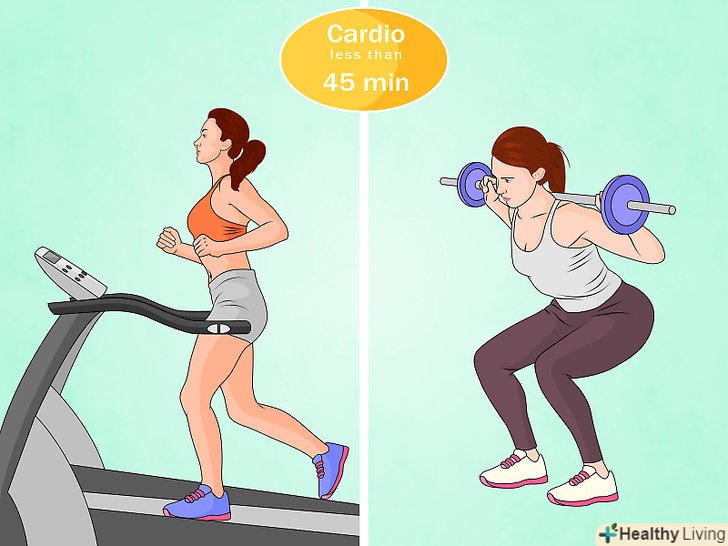 Зробіть основний упор на роботу з вагою. кардіотренування мають свої плюси, але коли мова заходить про те, щоб позбутися від жиру, силові тренування часто дають кращий і більш швидкий результат. Поступово додавайте кардіотренування в свій режим. Робіть кардиоупражнения перед силовим навантаженням, але не більше 45 хвилин. [3]