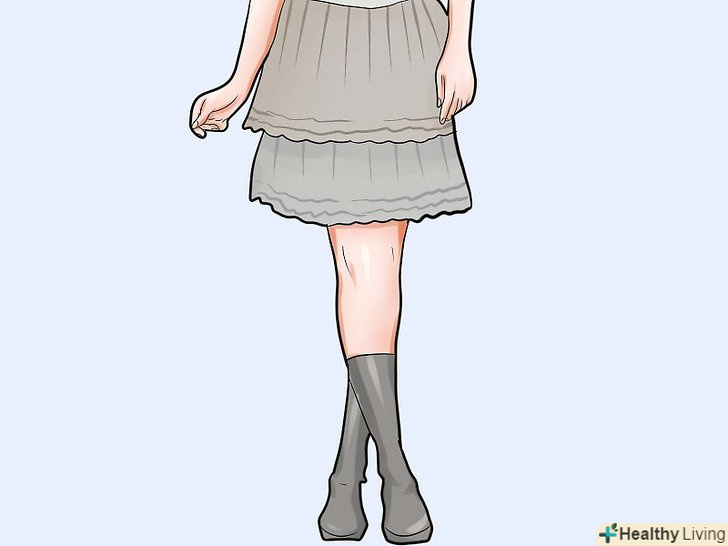 Носіть сукні та спідниці довжиною трохи вище коліна. носіть сукні, які на 2.5-5 см вище коліна; це зробить ваші ноги візуально менше. Носіння дуже коротких спідниць привертає увагу до ваших ніг, в той час як сукні, які трохи нижче коліна, підкреслять контраст між вашими худими ногами і тканиною, яку ви носите.