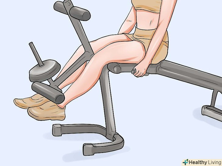 Робіть розгинання ніг. для виконання цієї вправи вам знадобиться тренажер для м'язів задньої поверхні стегна, що є стандартом в будь-якому тренажерному залі в силовому залі. Завантажте тренажер найважчою вагою, який ви можете підняти близько 10 разів. Це може бути від 20 до 50 фунтів, залежно від того, наскільки сильні ваші ноги.- Сядьте на тренажер з зігнутими колінами і ногами на нижню панель.