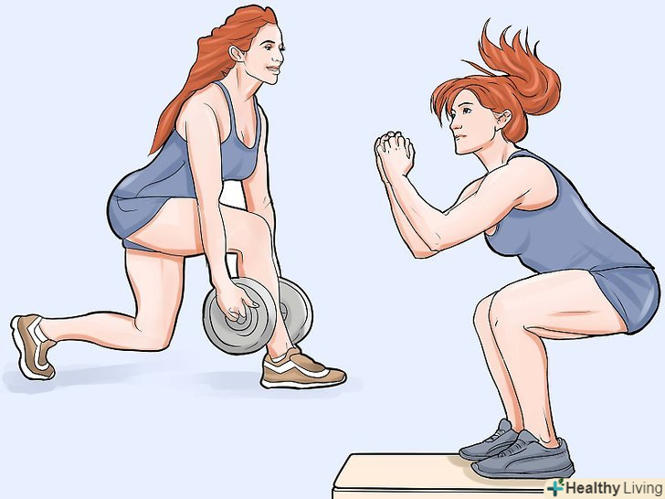 Робіть інтенсивні тренування. М'язи ніг використовуються для того, щоб привести ваше тіло (і все інше, що ви тримаєте) вгору і вниз по сходах, а також скрізь, де ви ходите протягом дня. Для того, щоб наростити ці м'язи, необхідно зосередитися на виконанні більш інтенсивних вправ, ніж для інших частин вашого тіла, які не отримують стільки вправ. Це означає, що при кожному тренуванні ви повинні підвищити частоту серцевих скороченні, що змусить ваші м'язи, як то кажуть, "горіти". Вам потрібно зруйнувати м'язові волокна, щоб потім наростити їх назад, але вже міцніше і більше.- Для кожної вправи підніміть таку вагу, який ви зможете підняти правильно до 10 повторень. Якщо ви легко можете підняти цю вагу близько 15 повторень, тоді ця вага занадто легка для вас, а якщо ви не можете підняти вагу більше декількох разів, тоді це занадто важка вага для вас.