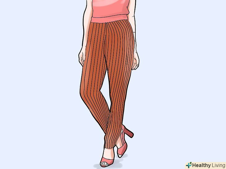 Носіть розкльошені штани. вони обтягнуть стегна, але будуть вільні в області коліна, що робить гомілку візуально більше і додає красиву форму вашим ногам. Але ви не зобов'язані носити кльош, якщо вам це не подобається. Навіть зовсім трохи розкльошені штани змінять ваш силует і зроблять ваші ноги візуально більше. [2]