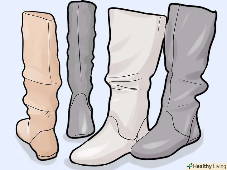 Носіть чоботи по коліно. чоботи, які доходять до коліна, можуть повністю змінити те, як буде виглядати гомілка. Виберіть масивні, товсті черевики замість обтягуючих чобіт. Носіть їх поверх джинсів або колготок, щоб зробити ваші ноги візуально більше.- Носіння чобіт поверх штанів додає трохи обсягу на ногах. Спробуйте носити такі чоботи поверх джинсів, щоб виглядати модно.