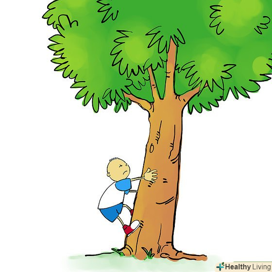 Міцно обхопіть дерево. Якщо ви можете з'єднати руки за його стовбуром, то у вас вийде добре за нього зачепитися. Якщо немає, то спробуйте зачепитися пальцями за кору. Вашою метою в даному випадку буде не спроба підтягнути себе вгору, а підтягнути ваше тіло якомога ближче до стовбура дерева.