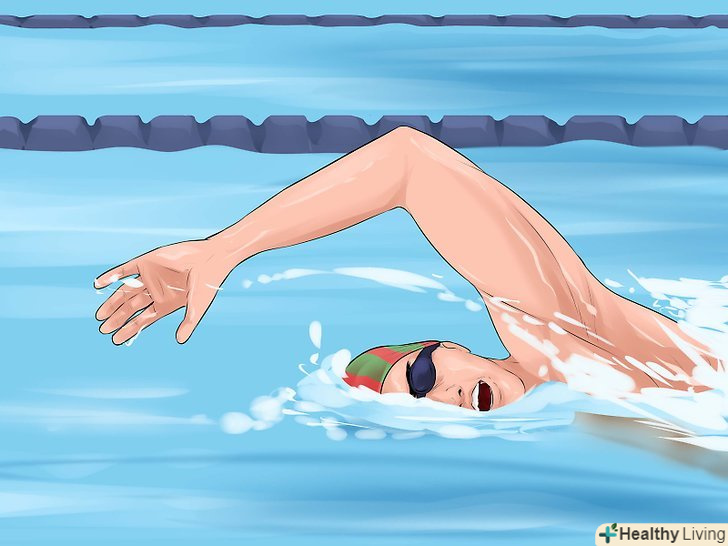 Займіться плаванням. плавання розробляє кожен м'яз вашого тіла, якщо робити правильні вправи, можна досить швидко накачати грудні м'язи і спину. Почніть з малого, а потім збільшуйте навантаження. Плавайте на спині, кролем, брасом, батерфляєм.- Розтягуйте плечі. Перед тим, як виконувати силові вправи, зробіть розминку. Так ви розігрієте м'язи і зменшите ризик випадково пошкодити зв'язки. Перед тренуванням краще зробити кілька легких вправ, щоб розім'яти всі групи м'язів.