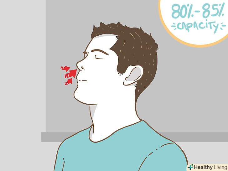 Глибоко вдихніть. швидше за все, у вас вийде наповнити легені на 80-85% їх ємності, так ваше тіло не буде сильно напружуватися. Якщо наповнити легені на повну ємність ваші м'язи напружаться і ви відчуєте дискомфорт.- Якщо можливо, попросіть друга стежити за вашим диханням. Якщо ви втратите свідомість, він зможе допомогти.