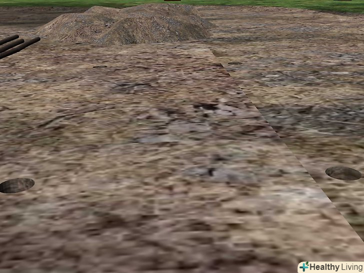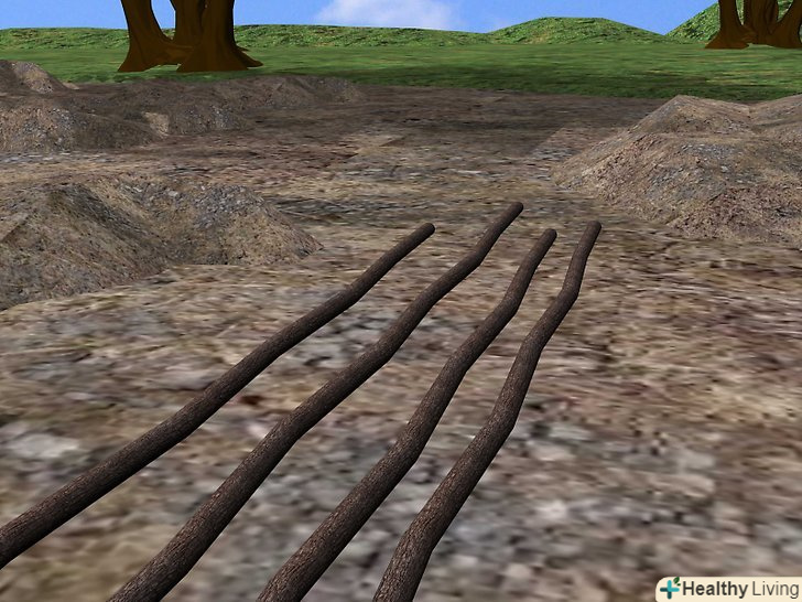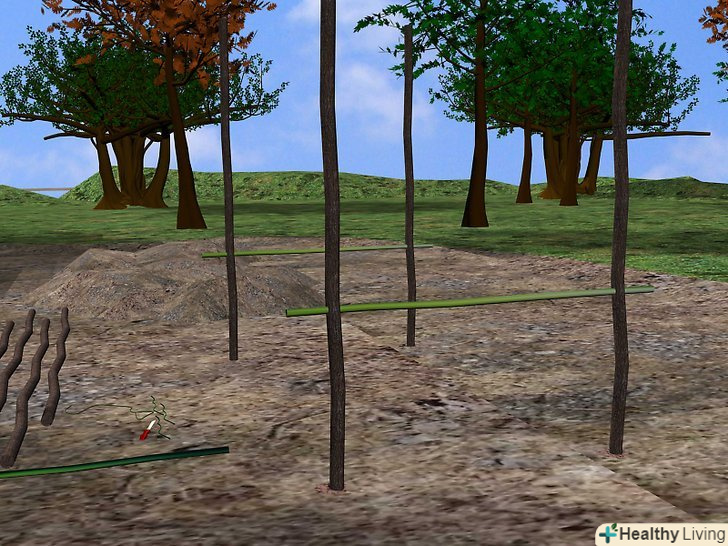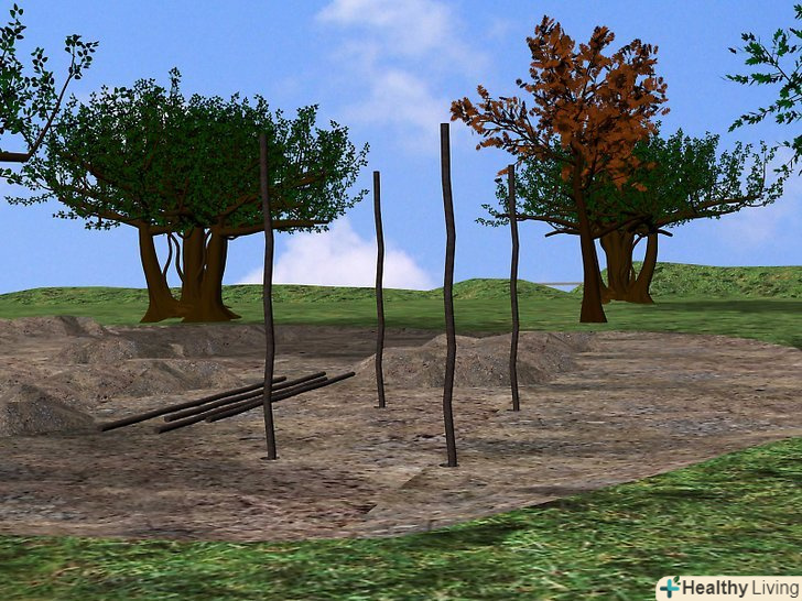 Знайдіть чотири колоди приблизно одного розміру, бамбукові жердини або гілки, висотою до плеча і близько 15 см в ширину. з цих "жердин" видаліть гілочки, сучки і листя.- Використовуючи заточену палицю, викопайте чотири отвори для жердин. Ями повинні позначати розміри вашого укриття.