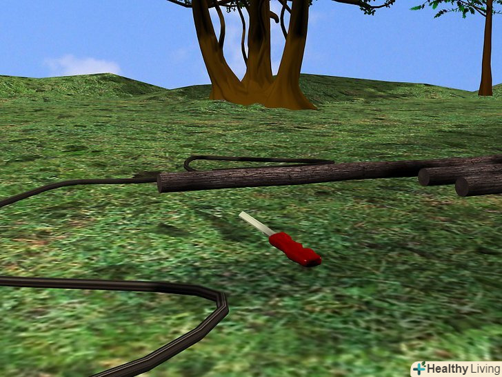 Ріжте і зв'язуйте все, що тільки можете. оскільки вам доведеться заготовити сировину, порізати і зв'язати все разом, ви повинні використовувати свою винахідливість і знайти матеріали, якими можна замінити те, що вам потрібно, якщо тільки ви не носите в кишені ніж і мотузку. Деякі варіанти включають:- Заточена палиця, загострені камені для різання