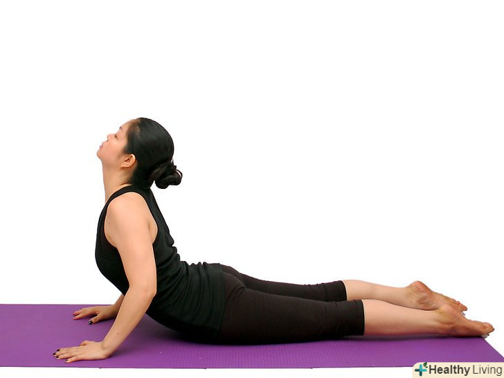 Підключіть верхню частину тіла. ляжте на живіт, руки опустіть на підлогу і кілька разів підніміть і опустіть верхню частину тіла. Голова переходить в шию і витягується. Поки вдихаєте і видихаєте, думайте:- " я відпускаю уявні бажання." що ви хочете відпустити сьогодні?