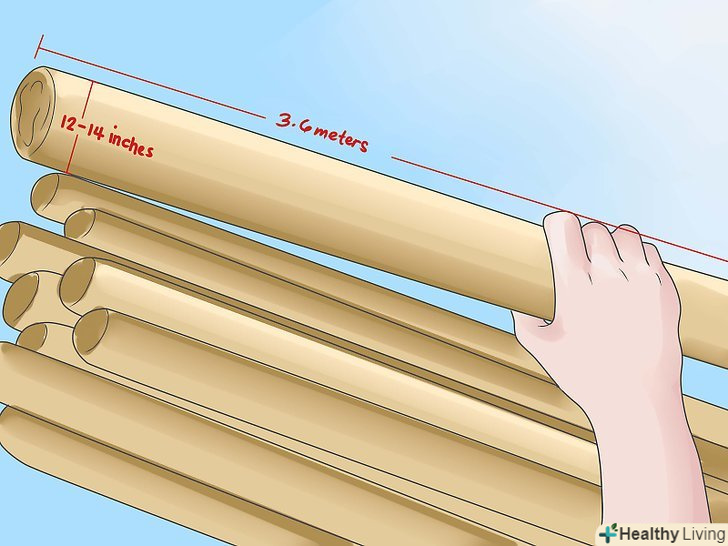 Виберіть колоди. Плоту для 3 осіб необхідні колоди довжиною близько 3,6 метра (12 футів). Ширина плоту повинна становити 1,8 метра (6 футів). Діаметр кожного колоди повинен бути в діапазоні від 25 до 30 сантиметрів (12-14 дюймів). Важливо відзначити, що колоди повинні збігатися за розміром таким чином, щоб при складанні забезпечувати рівномірну поверхню.