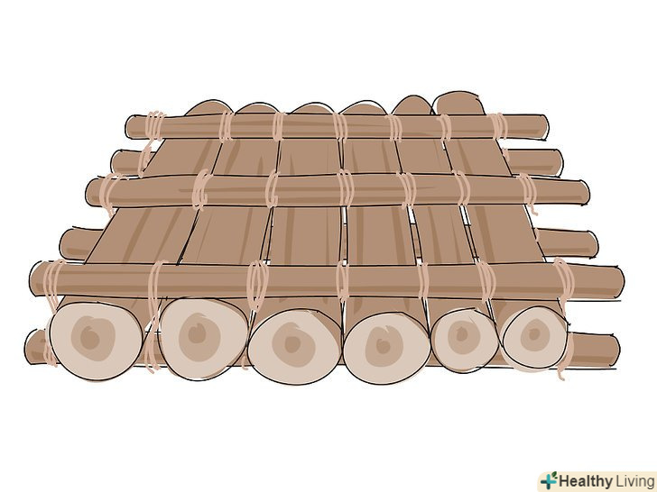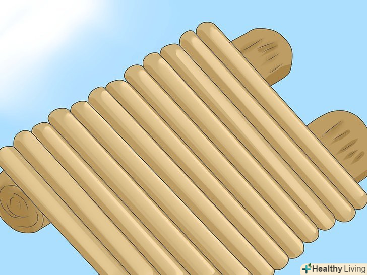 Підберіть від 4 до 10 колод. акуратно розташуйте їх у воді біля берега на такій глибині, яка дозволить колодам перебувати на плаву. Виберіть однакові за розміром колоди: так вони будуть краще стикуватися один з одним (дотримуйтесь обережності і не розміщуйте колоди в неспокійній воді, інакше вони можуть поплисти!).