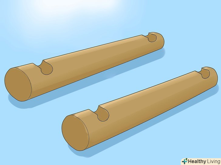 Виріжете два ряди пазів на кінцях колод. ці пази повинні розташовуватися зверху і знизу кожного колоди, і вони повинні збігатися (вибудовуватися в одну лінію) коли колоди зрушені разом.- Ряди верхніх пазів повинні бути зміщені щодо нижніх; верхні пази повинні розташовуватися ближче до краю а нижні повинні бути більше спрямовані всередину, але не глибоко.