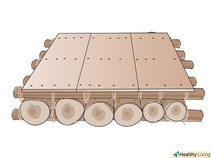 Додайте палубу. легкі жердини можна додати зверху для того, щоб сформувати палубу, яка допоможе вам, вашим попутникам і спорядженню зберегтися в більш сухих умовах.