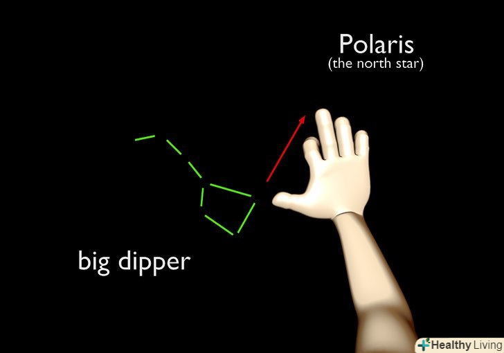 Витягніть руку і розчепірте пальці – Полярна зірка повинна бути приблизно на тій же відстані, що і відстань від великого пальця до середнього.