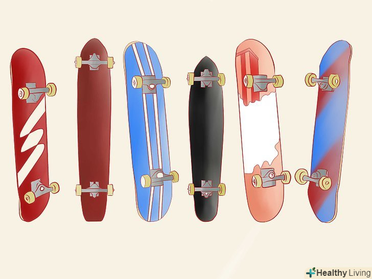 Купіть якісну деку. двічі подумайте, перш ніж купувати деку в місцевих магазинах – їх якість залишає бажати кращого. Якщо ви купуєте готовий скейтборд, то замовте його в інтернеті або зайдіть в місцевий скейтшоп і попросіть продавця допомогти вам з вибором. Якщо ви хочете просто кататися, то підійде дека шириною 7.5-8.0 дюймів (18,5-20 см.), для трюків більше підійдуть дошки від 8 дюймів і ширше.