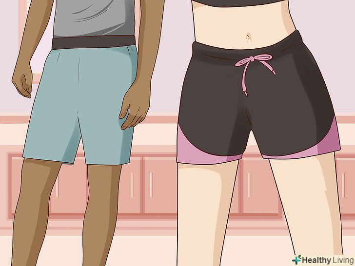 Спробуйте Велосипедні шорти. знову ж таки, для занять Бікрам йогою чим менше одягу, тим краще; ви швидше за все не захочете, щоб ноги були повністю закриті. Велосипедні шорти відмінно підходять для занять йогою, так як вони залишаються на вас, коли ви рухаєтеся.- Також подумайте про те, чи просвічуються вони, коли розтягуються. Ви ж хочете, щоб ваше тіло було заховано на заняттях.