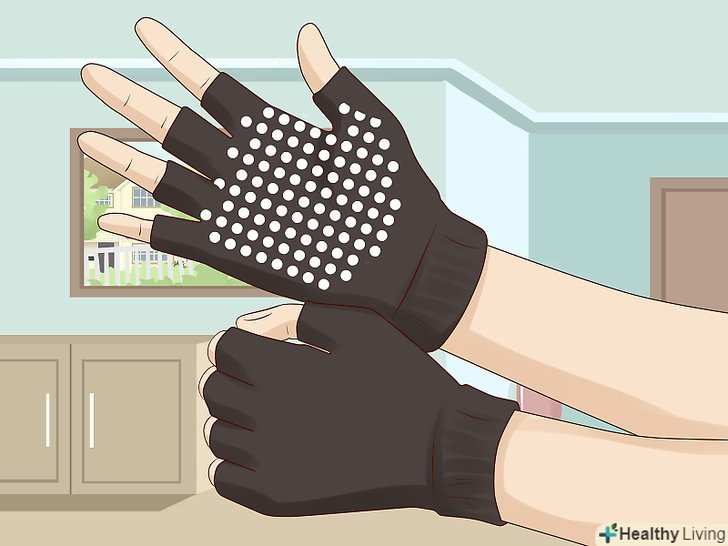 Виберіть пару рукавичок для йоги. хоча вони і не виглядають шикарно, вони дуже корисні. Їх нековзне покриття на долонях дасть вам велику силу зчеплення і запобіжить ковзання рук по каремату. Вони зовсім недорогі і їх можна знайти в спортивних магазинах, де продається одяг для йоги, іноді навіть в магазинах здорового харчування.