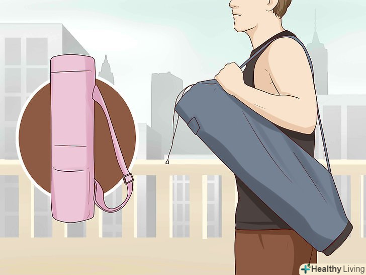 Купіть сумку для занять йогою або ремінець для каремату. з ними простіше переносити каремат, так як ви зможете повісити його на плече. Це також відмінний спосіб тримати каремат в згорнутому вигляді, поки ви його не використовуєте.