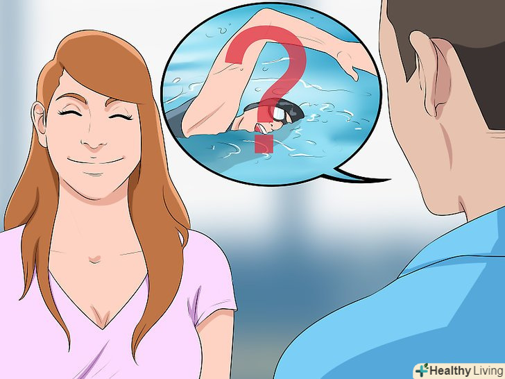 Запитайте людину, чому він хоче навчитися плавати в цьому віці. деякі люди прагнуть до цього з загальних міркувань безпеки. Інші хочуть безпечно водити своїх дітей у басейн. А треті мріють перемогти давній страх дитинства. Розуміння причин допоможе вам вирішити, як будувати уроки і на яких навичках зосередитися. [1]- Наприклад, якщо ваш учень хоче навчитися плавати, щоб супроводжувати своїх дітей в басейн, можна витратити більше часу на вдосконалення плавання вільним стилем, так як це найкращий спосіб дістатися до людини, яка потребує допомоги, перебуваючи у воді.