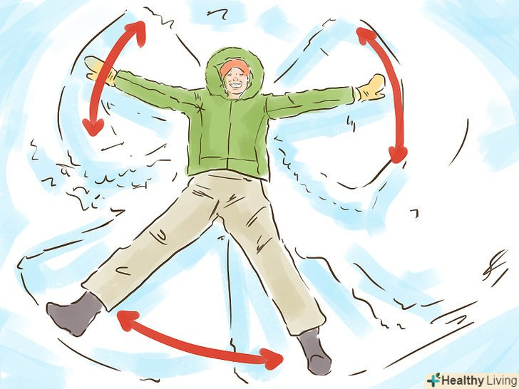 Грайте в снігу. діти знають, як отримати величезне фізичне навантаження, коли випадає сніг: можна малювати на снігу снігових ангелів, кататися на санках і навіть затіяти справжню битву в сніжки, яка змусить серце посилено битися. Щоб взяти участь в такого роду активності і отримати від неї чимало задоволення, не обов'язково бути дитиною. [5]- Звичайно, якщо ви станете малювати снігових ангелів, з боку це буде мало схоже на фізичну вправу, але насправді це ті ж самі стрибки з розведенням рук і ніг в сторони, тільки в горизонтальному положенні.