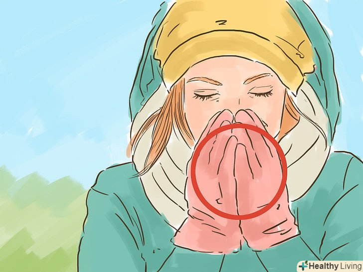 Навчіться розпізнавати симптоми обмороження і переохолодження. обмороження і переохолодження — можливі види ризику для будь-якої людини, яка взимку проводить багато часу на вулиці. При цьому ризик збільшується, якщо ви займаєтеся інтенсивним фізичним навантаженням, так як в такому стані людина менш схильний звертати увагу на відповідні симптоми. [16]- Ваші пальці, руки, ноги, вуха, ніс і щоки найбільше схильні до ризику обмороження. Якщо шкіра в цих місцях стане сірою або пожовтіє, можливо, у вас поверхневе обмороження.
