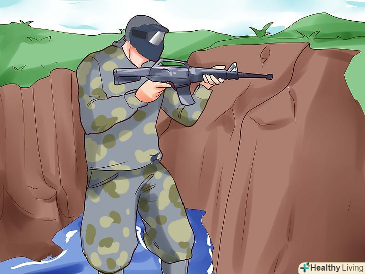 Використовуйте укриття. укриття-об'єкт або зміна в ландшафті, яке ви можете використовувати, щоб сховатися або захистити себе. Головний приклад укриття-траншея. Траншея хороша для того, щоб сховатися, але майте на увазі, що це і обмежує вас в просуванні назад, ви зможете рухатися тільки паралельно вашому противнику (це все залежить від викривлення і довжини траншеї).- Не пропускайте і погані укриття-щось, що не може повністю приховувати або блокувати ваше тіло: такі як маленькі дерева або дрібні ями в землі. У надзвичайних ситуаціях вони краще, ніж нічого, але краще уникати їх по можливості. Укриття-цінний актив до виграшу змагання, завжди пильно стежте за хорошим укриттям попереду, позаду, зліва і праворуч від вас. Це допоможе вам, при перебіжках в різні місця або для кращого положення гри або для більш безпечного місця, щоб відступити.