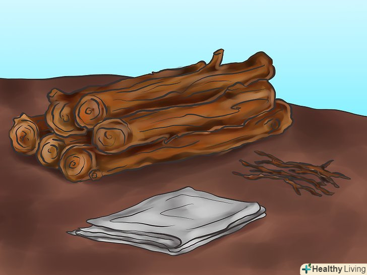 Зберіть дрова, хмиз і труть. за допомогою однієї лише обвугленої тканини розпалити дрова не вдасться. Для розпалювання багаття вам знадобиться труть (суха трава, обрізки кори або газета), хмиз (прути і невеликі гілки) і, звичайно ж, самі дрова. Обвуглена тканина спрощує процес розпалювання і займання трута.- Обвуглена тканина найбільш корисна при вологій погоді, коли труть важче розпалити.