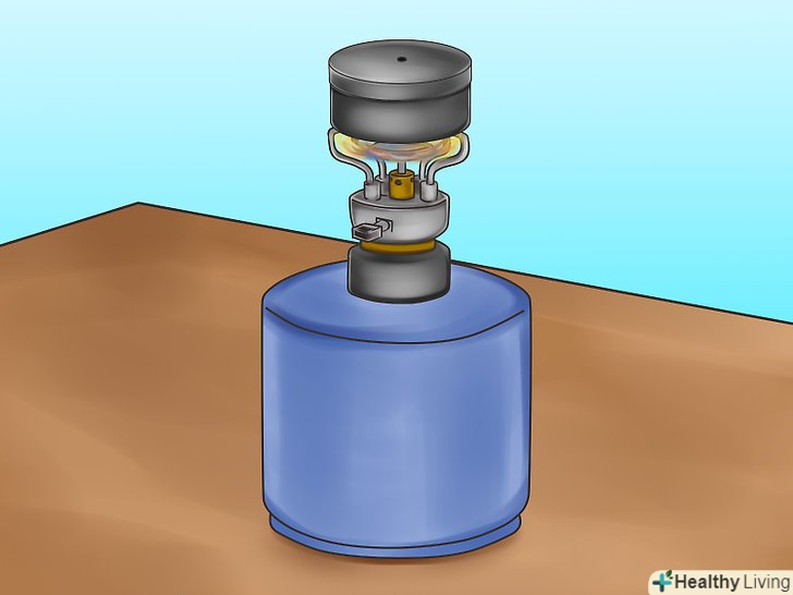 Поставте банку на провітрюване джерело тепла. від обвуглюваної тканини буде виходити неприємний і потенційно отруйний дим. Встановіть джерело тепла зовні, на незайману поверхню. Якщо ви перебуваєте в приміщенні, то навколишній простір повинен бути вогнетривким і добре провітрюватися. Ось, що можна використовувати під час відпочинку на природі або в екстреній ситуації:- Похідну плиту на газу, включену на найслабший вогонь;
