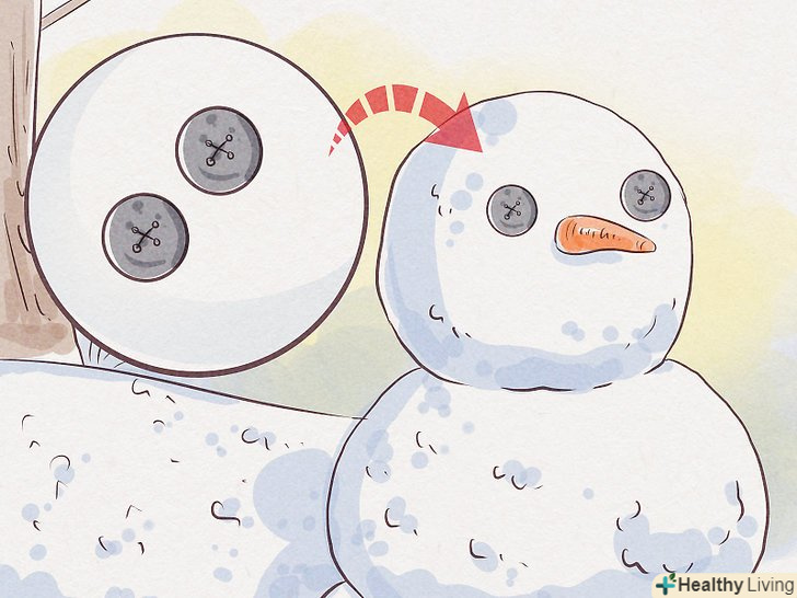 Візьміть гудзики, камінчики або вуглинки, щоб зробити сніговику очі. розташуйте їх вище моркви, дотримуючись симетрію. Натисніть вибраний матеріал у сніг і прокрутіть його, щоб зафіксувати на своєму місці. Для виготовлення очей підійдуть будь-які округлі предмети.- Іншими можливими матеріалами для очей можуть стати Жовті м'ячики для настільного тенісу, невеликі сині м'ячики з пружної гуми або великі зелені стрази з пластика.