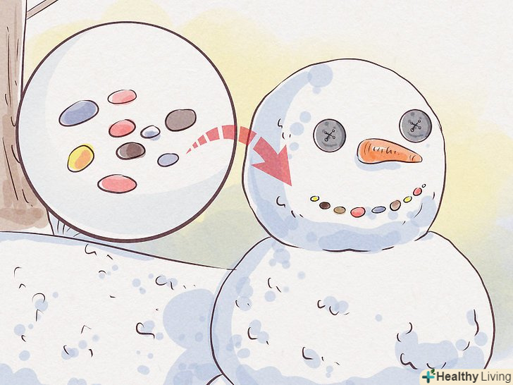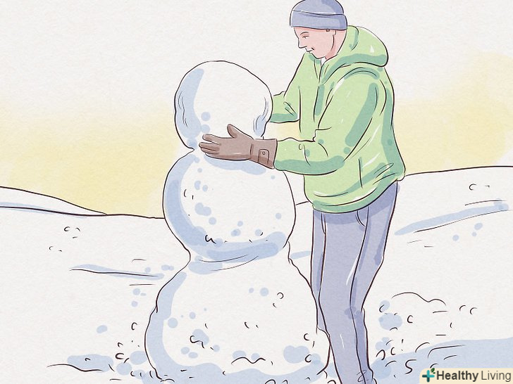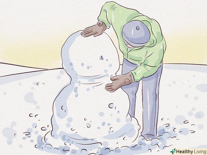 Зміцніть місця зіткнення грудок додатковою кількістю снігу. як тільки зберете всі три частини сніговика, підчепити ще трохи снігу і ущільните їм стики між грудками. Це додасть фігурі сніговика цілісний вигляд від основи до голови, і він вже не буде здаватися стопкою кульок, поставлених один на одного.