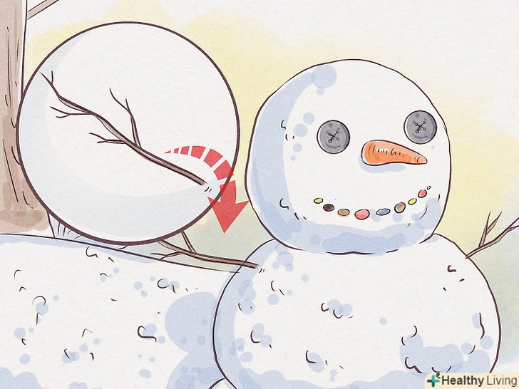 Застроміть в сніговика дві палиці, які стануть його руками. знайдіть пару палиць товщиною приблизно 2,5 см або трохи менше і довжиною близько метра. Застроміть їх з боків в середній кому сніговика. Розташуйте палиці з нахилом вгору або вниз, надавши сніговику ту позу, яка вам найбільше подобається.- При бажанні, перш ніж додавати руки, накиньте на сніговика сорочку або яке-небудь пальто.