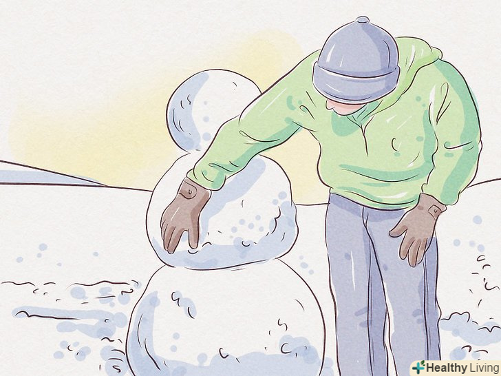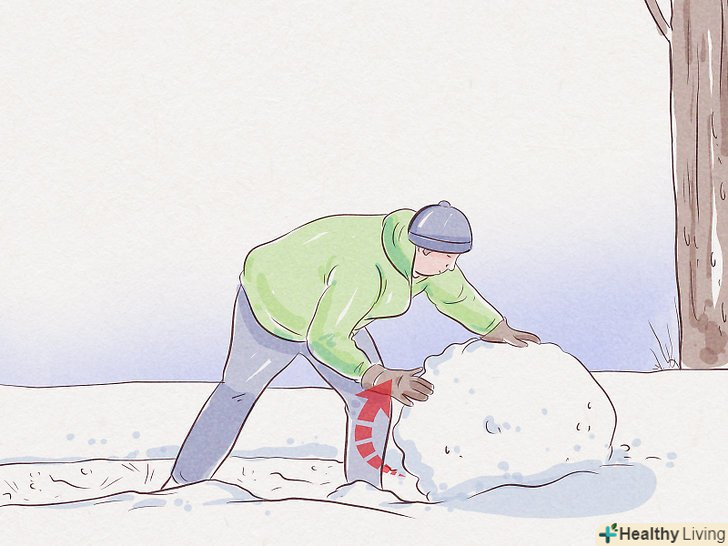 Підготуйте сніжок для створення нижньої снігової грудки. зачерпніть обома руками жменю снігу. Сформуйте з нього кулястий сніжок. Поступово додавайте до нього додаткову кількість снігу, поки куля не виросте до 30 см в діаметрі або не стане занадто важким.- Обов'язково надіньте теплі вологостійкі рукавички, інакше руки будуть сильно мерзнути від тісного контакту зі снігом.