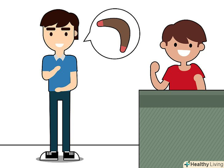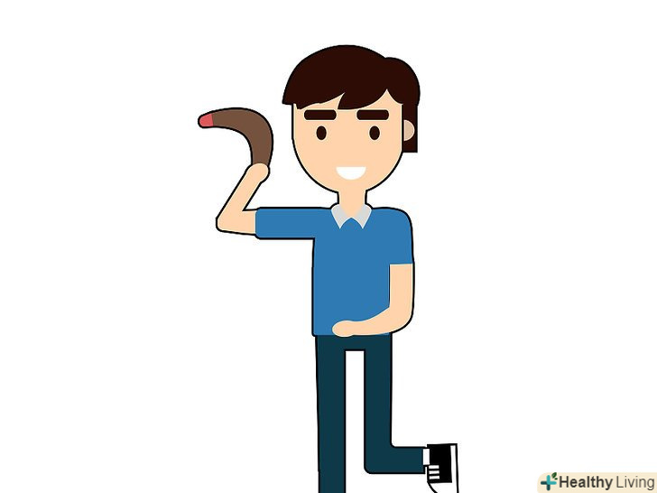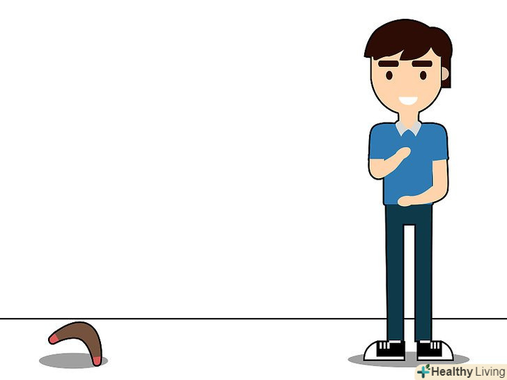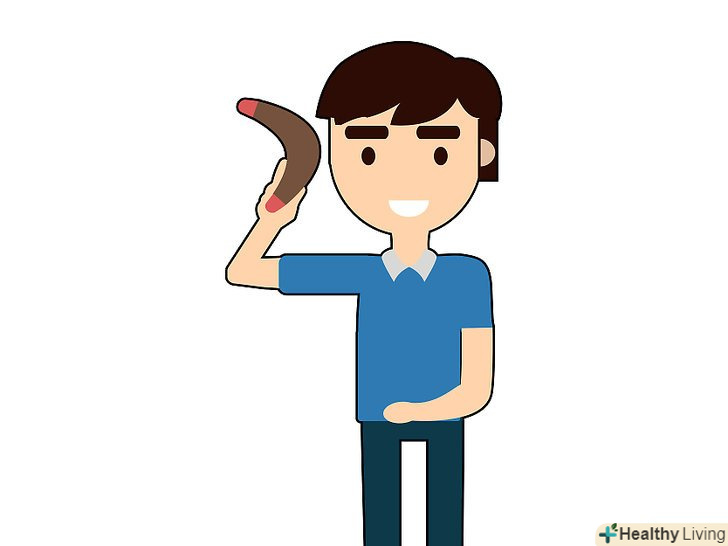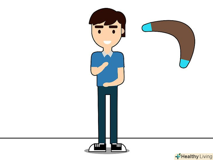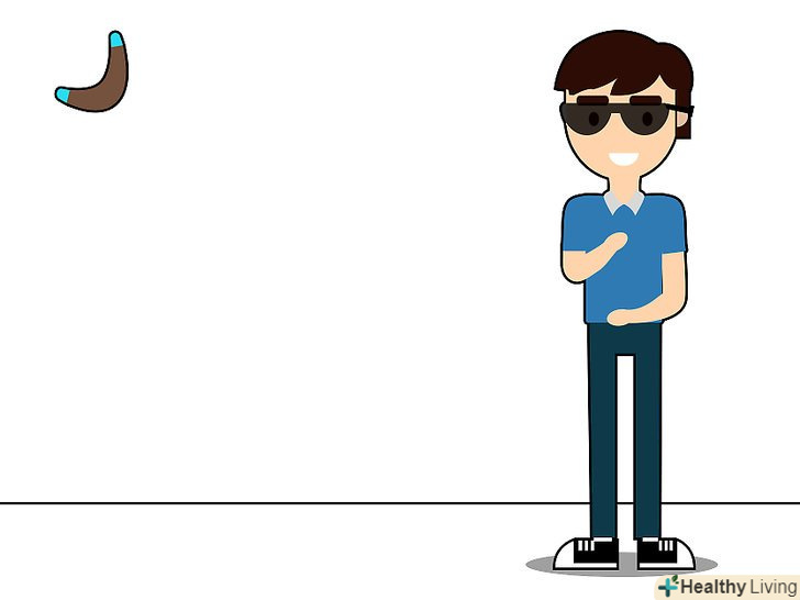 Навчіться ловити бумеранг. найкраще ловити повертається бумеранг двома витягнутими руками і чекати того моменту, коли бумеранг виявиться нижче рівня плечей, щоб різко звести руки разом і зловити метальний снаряд, затиснувши його між долонями (на зразок бутерброда). Якщо ви втратили бумеранг з уваги або він летить до вас занадто швидко, розверніться, припадіть до землі і закрийте голову руками. [21]- Існує досить багато інших трюкових способів лову бумеранга, які можна випробувати, включаючи захоплення з-під ноги, захоплення рукою і ногою і захоплення за спиною. Для захисту рук при вивченні трюкових захоплень можна використовувати набивні захисні рукавички без пальців. [22]