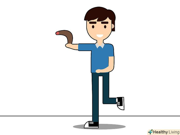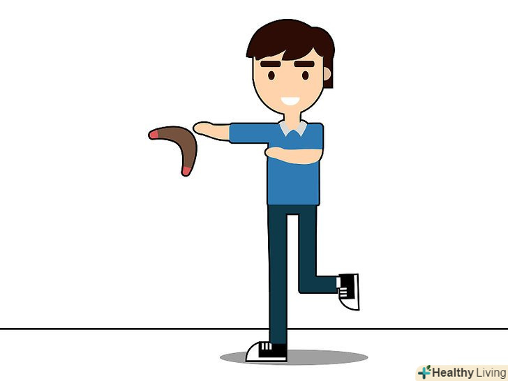 Навчіться правильно ставити ноги. метальник-правша повинен виставляти вперед праву ногу і піднімати ліву, щоб вся вага його тіла припадав на праву ногу, а потім під час кидка робити крок вперед лівою ногою в так званому "випаді вперед". Це дозволить підвищити силу кидка і збільшить відстань, яке пролетить бумеранг. [18]