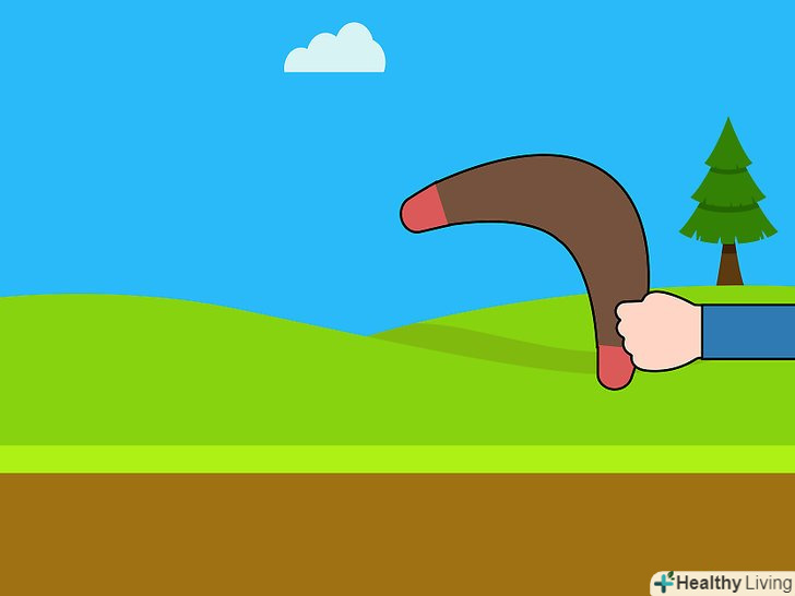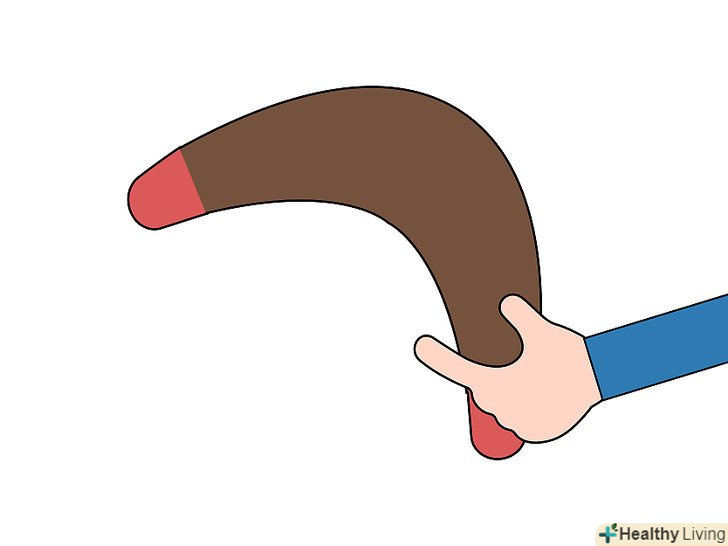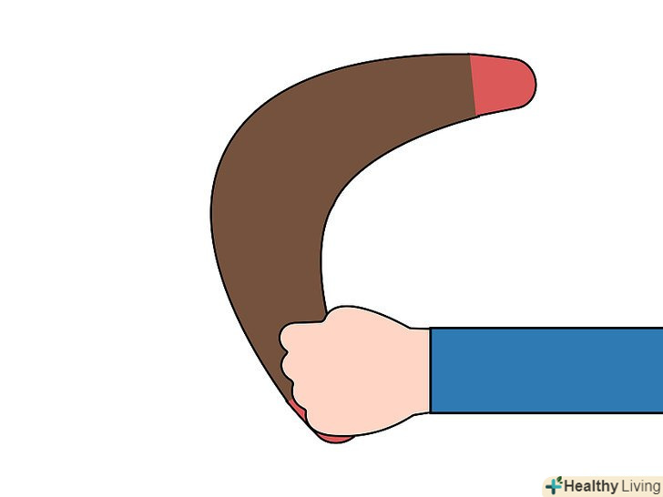 Почніть з правильного захоплення бумеранга. бумеранг можна тримати будь – якою рукою-сильною (основною) або слабкою (неосновною). У будь – якому випадку необхідно простежити за тим, щоб пофарбована опукла сторона бумеранга завжди була звернена до вас, а плоска сторона-від вас. [1]